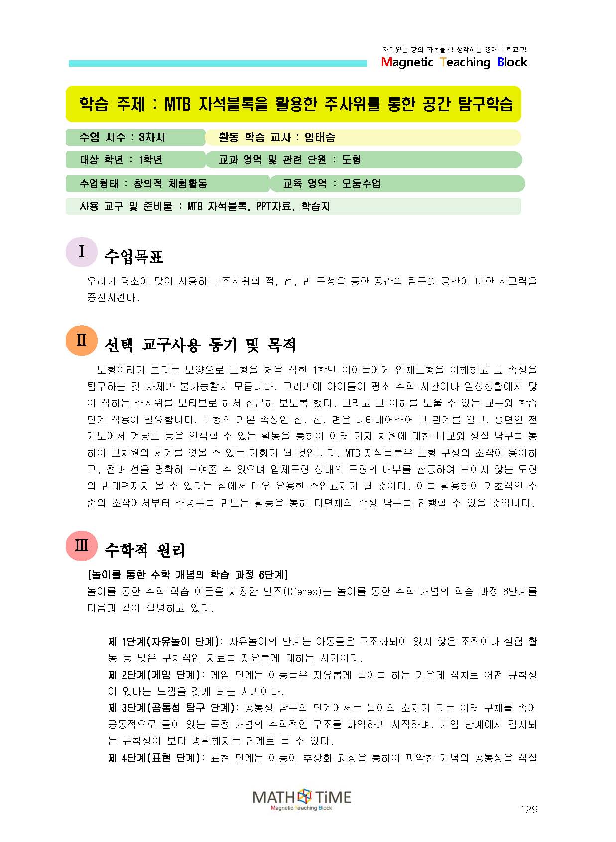 MTB¸¦ Ȱ¿ëÇÑ ÁÖ»çÀ§¸¦ ÅëÇÑ °ø°£Å½±¸ÇнÀ / Áø¾ÈºÎ±ÍÃÊ ÀÓŽ ¼±»ý´Ô